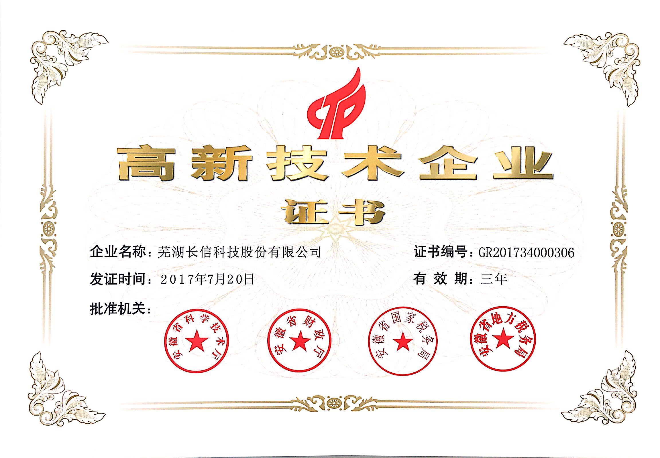 2017ハイテク企業証書
