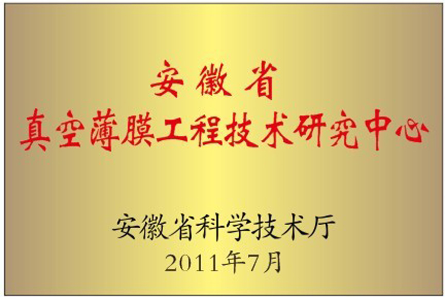 2011安徽省真空フィルム工程技術研究センター証明書